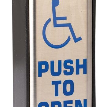 Constructed from 18-gauge stainless steel with a brushed finish, it features a compact design measuring 45mm in width, 115mm in height, and 38mm in depth. The push pad is engraved with the “Handicap Logo/Press To Open” (HPTO) legend, ensuring accessibility compliance. It operates on a low voltage of 9 VDC with a wireless transmitter and is equipped with a momentary contact switch type, offering both Normally Open (NO) and Normally Closed (NC) configurations. The activation switch is rated at 15A @ 125 or 250 VAC or 2A @ 48 VDC, ensuring reliable performance.