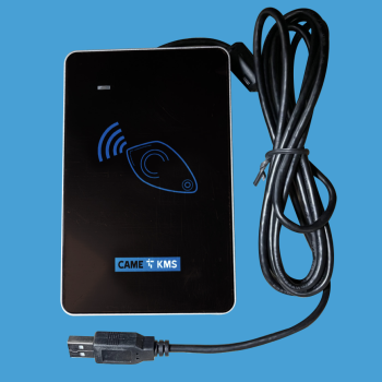 The CAME KMS SimpleKey PC administration readers primary purpose is to identify CAME KMS ID devices (tokens, fobs, RF transmitters etc.), subsequently allowing for improved fob management when used in conjunction with the CAME KMS cloud management user portal (SimpleKey Web). This desktop reader provides SimpleKey Web administrators with a more effective token management process. Upon presentation of a valid token the details of the unique code embedded within the token can be seen on the SimpleKey Web user screen. Any associated information pertaining to this token is then available to the user allowing them to see where the token belongs and a complete history of its use. The system user can instantly make changes to the token credentials if needed. The inbuilt RF reader is capable of reading both 153 & 125 KHZ type devices and has a bi-coloured LED and sounder to indicate an ID device has been read. Connection to the PC uses a standard type A USB 2.0 connection (Keyboard Emulation). The USB reader does not provide any control function and is purely a Human Input Device. It has no on-board memory or software and will only work as part of the SimpleKey Web cloud-based user platform. For added security SimpleKey Web is hosted on Amazon Secure Web Servers (AWS) therefore does not need client’s IT services other than the ability for a user to browse to their SimpleKey Web cloud portal.